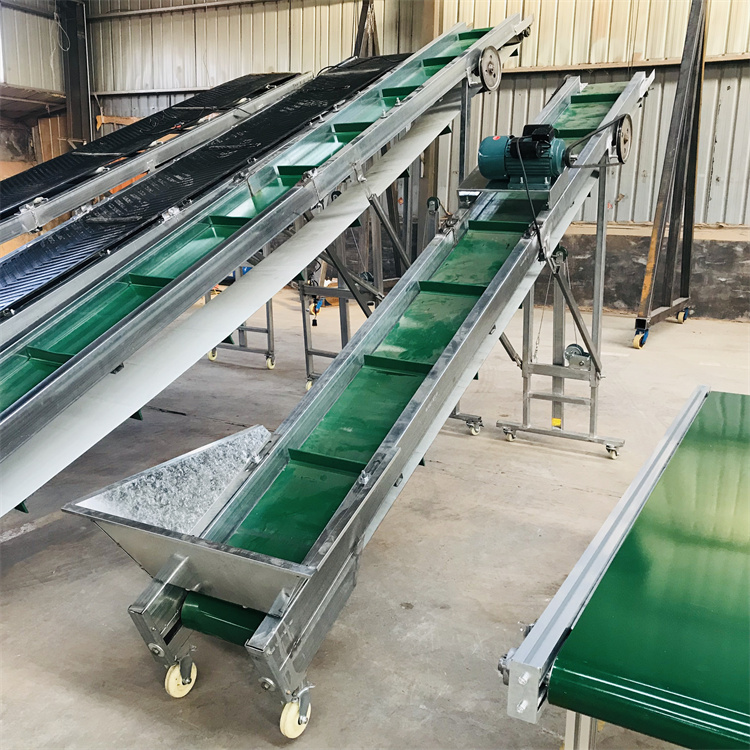 2、结构形式多样,有槽形胶带输送机、平型带式输送机、爬坡皮带式输送机、侧倾皮带输送机、转弯皮带输输机等多种形式,输送带上还可增设推板、侧挡板、裙边等附件,能满足各种工艺要求。